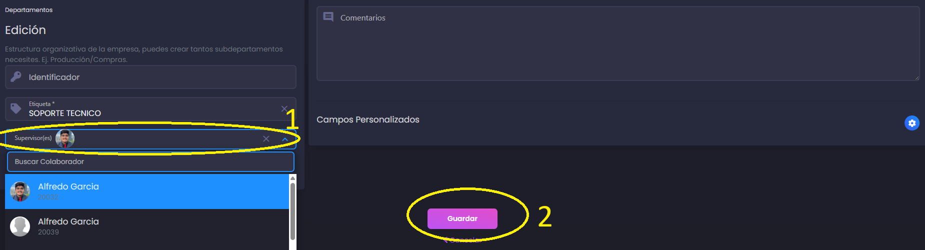 Es fundamental realizar este procedimiento con cuidado para garantizar que cada supervisor tenga acceso únicamente al personal que le corresponde. Una asignación incorrecta podría generar problemas en la gestión y en la visibilidad de información sensible. Una vez que el colaborador haya sido asignado como supervisor, debes verificar que los colaboradores estén correctamente asociados al departamento, centro de costos, sucursal o región correspondiente, asegurando así que puedan ser visualizados de manera adecuada por el supervisor.