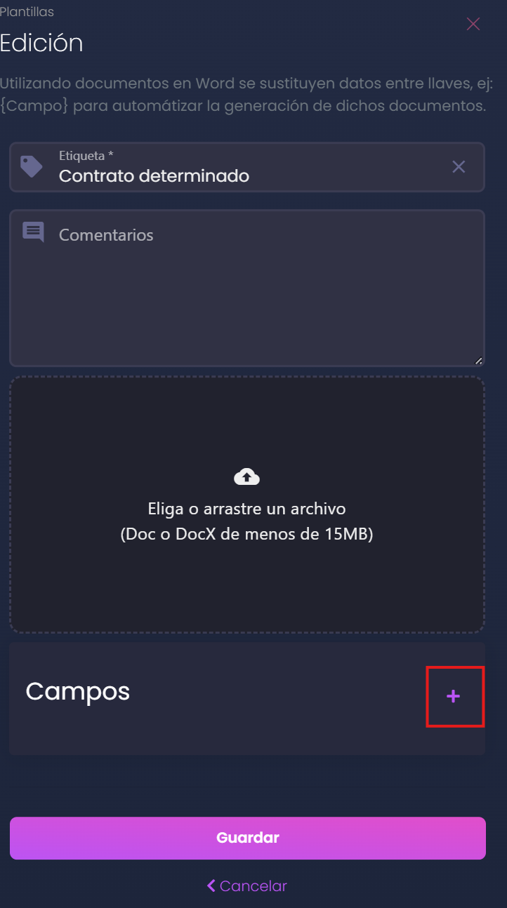 - Llenamos la información solicitada y subimos la plantilla en un formato .docx