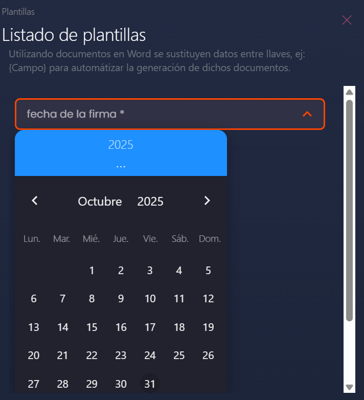En algunas ocasiones, la fecha de firma no coincide con las opciones disponibles dentro de los registros en eClock Go. En estos casos, es posible crear un campo personalizado que permita seleccionar una fecha específica, elegida directamente por nosotros. Para ello realizaremos los siguientes pasos: