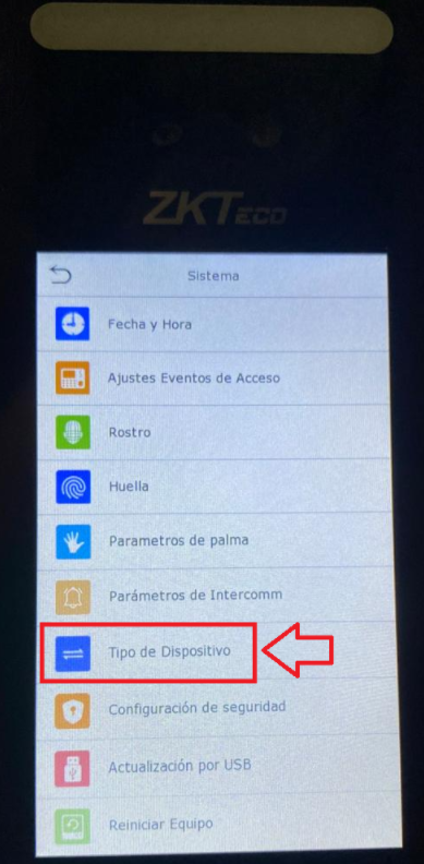 Lo primero que tenemos que configurar es el "Tipo de dispositivo". Esto se refiere a elegir como usaremos el reloj, será como control de accesos (Normalmente se usa para restringir algun área) o como un reloj de asistencia.
