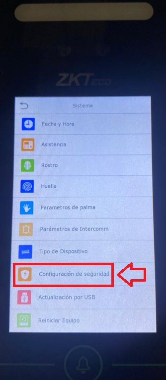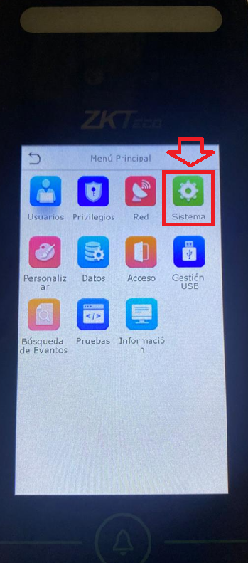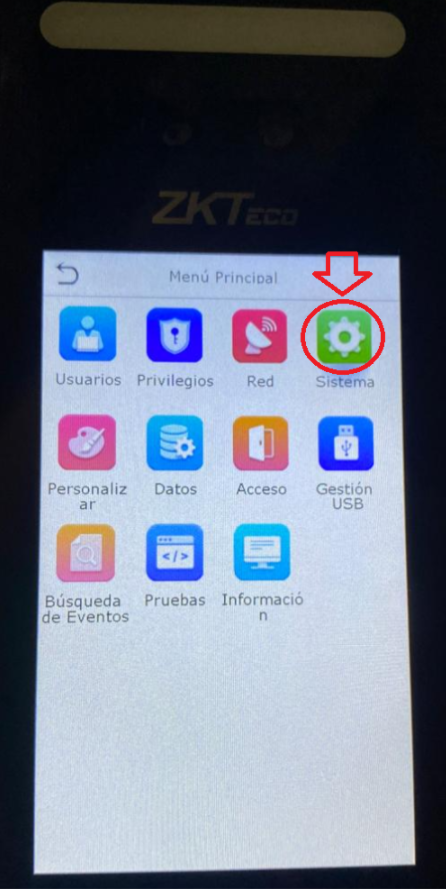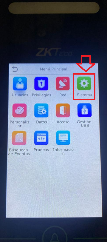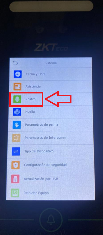 Dentro del menú del checador, buscamos la opción "SISTEMA" y luego "ROSTRO"