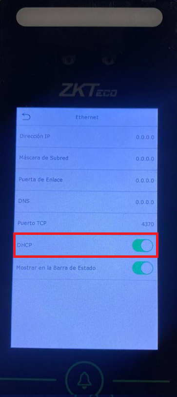 Posteriormente conectar el cable ethernet y activar el DHCP en el checador