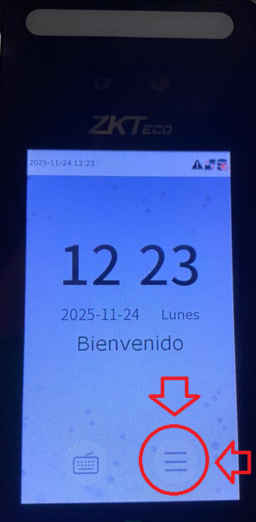 1.- Entrar al menú del checador seleccionando el siguiente boton en la pantalla del checador