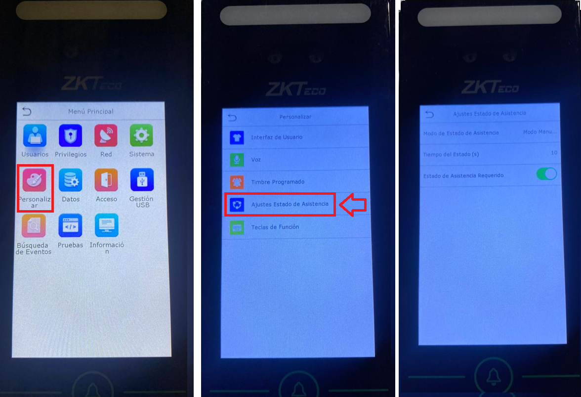Estado de Asistencia Requerido: Obliga al usuario a escoger Entrada/Salida antes de checar.