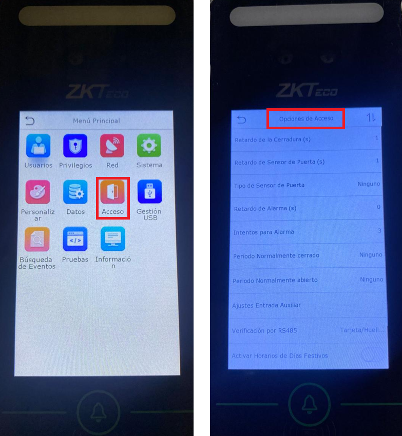 ➡️ Son ajustes que determinan cómo y cuándo el checador activa la cerradura o permite el paso. (Cómo lo usaremos para control de asistencia, esta será la configuración que usaremos)